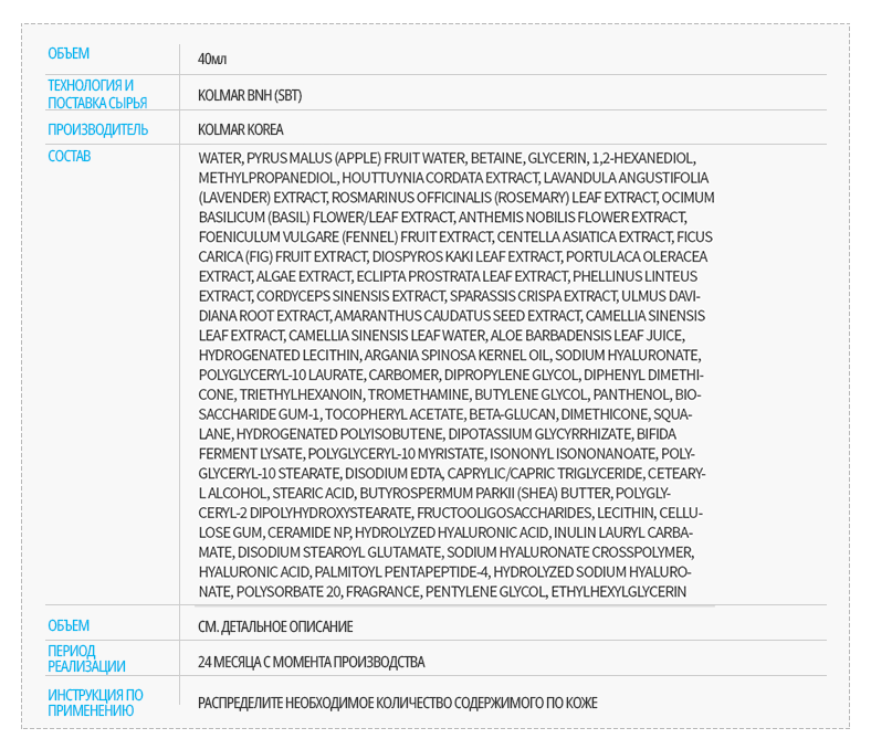 Думаю, что не стоит пересказывать довольно подробное описание состава крема от самой компании Атоми. Остановлюсь только на наиболее значимых фактах.